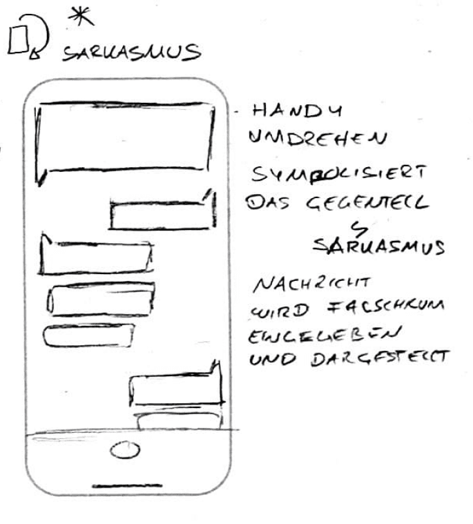 Sarcasm is clarified through subtle transformation of the message bubble. A simple interaction alters its orientation or behavior to signal ironic intent, reducing the risk of misinterpretation.