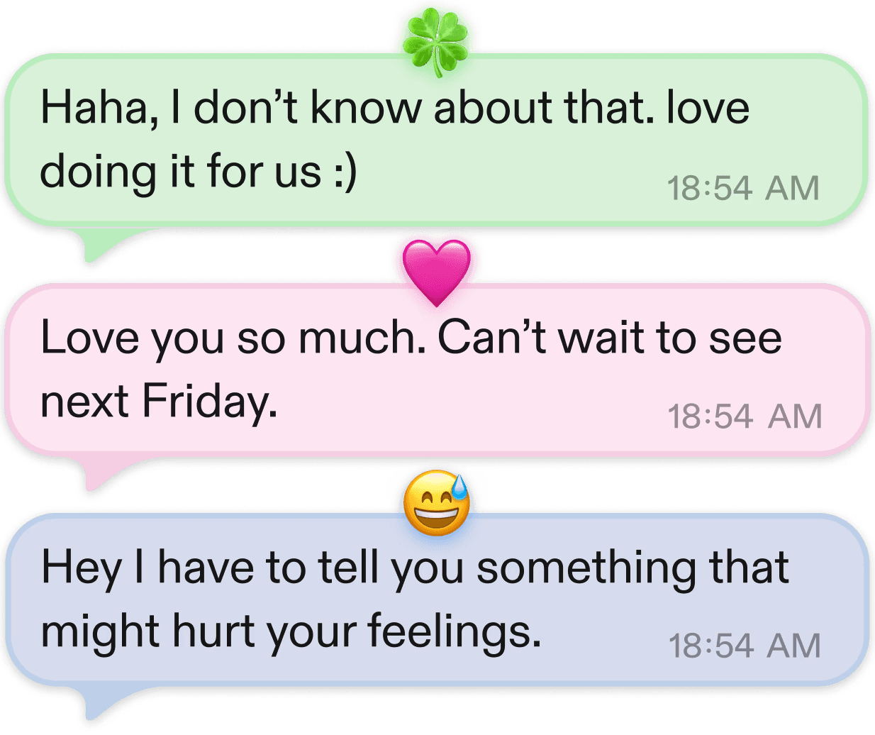Early concepts tested visual overlays and typographic changes. The strongest direction emerged when emotion was embedded into existing behaviors such as sending, reacting or navigating. Gesture became the primary expressive medium.