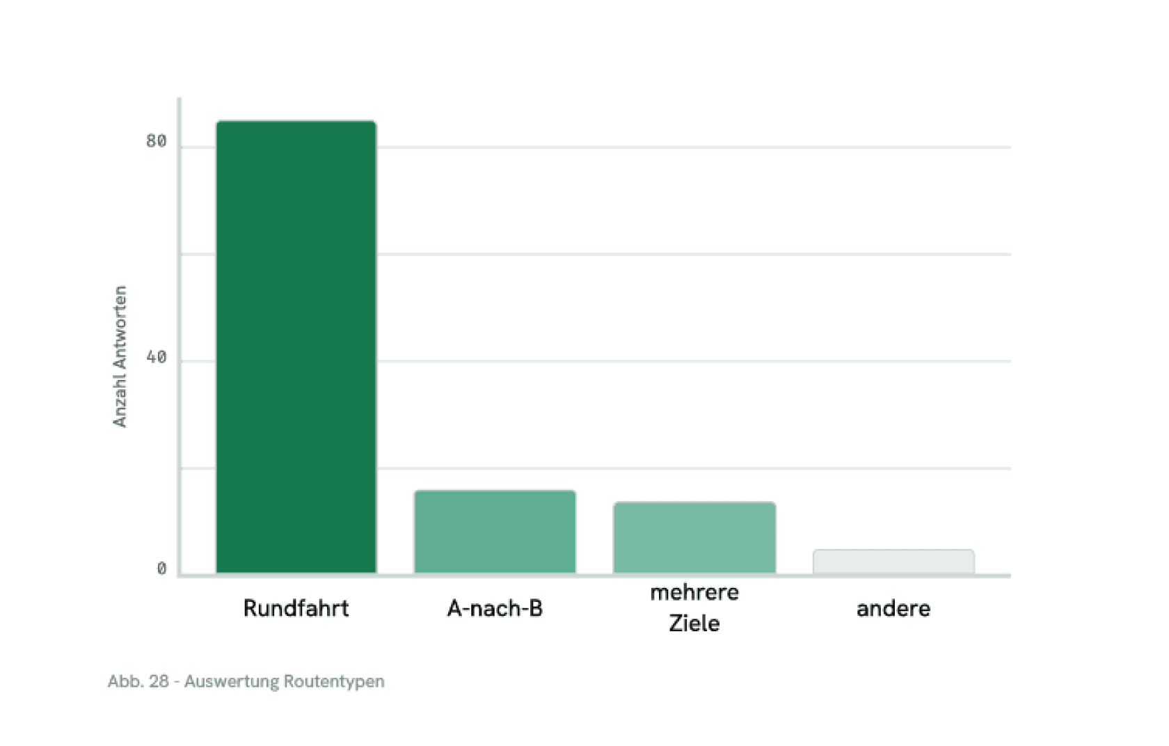 Survey (100+ cyclists) showed strong preference for loop routes, high prioritization of scenery and safety, and clear demand for total ascent and max gradient transparency.